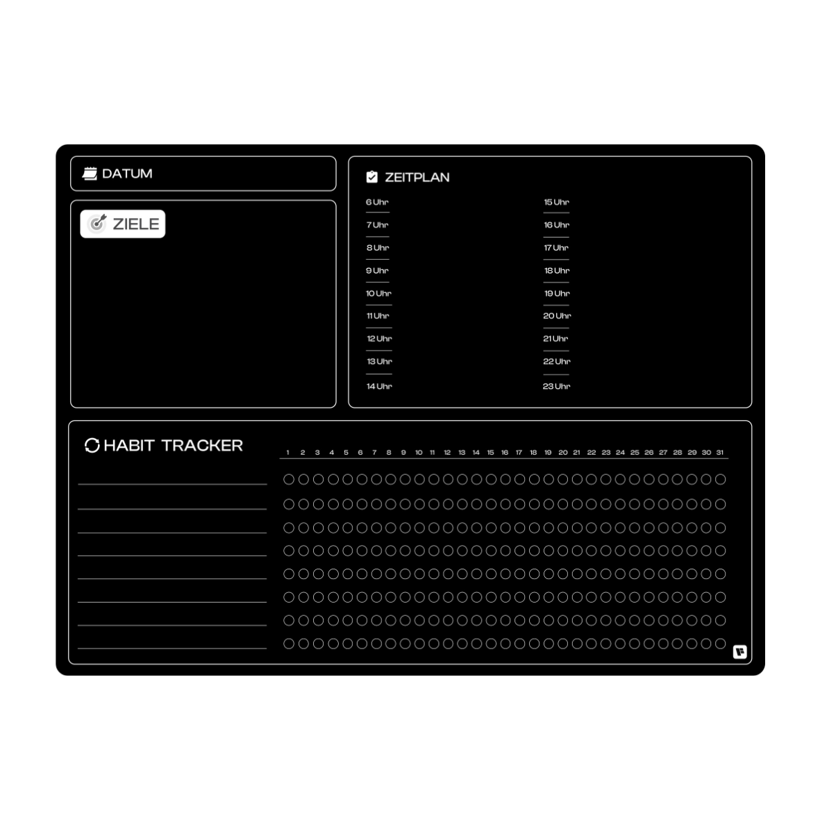 Deine Ziele: Setze hier klare Tages-, Wochen-, Monats- oder Jahresziele.